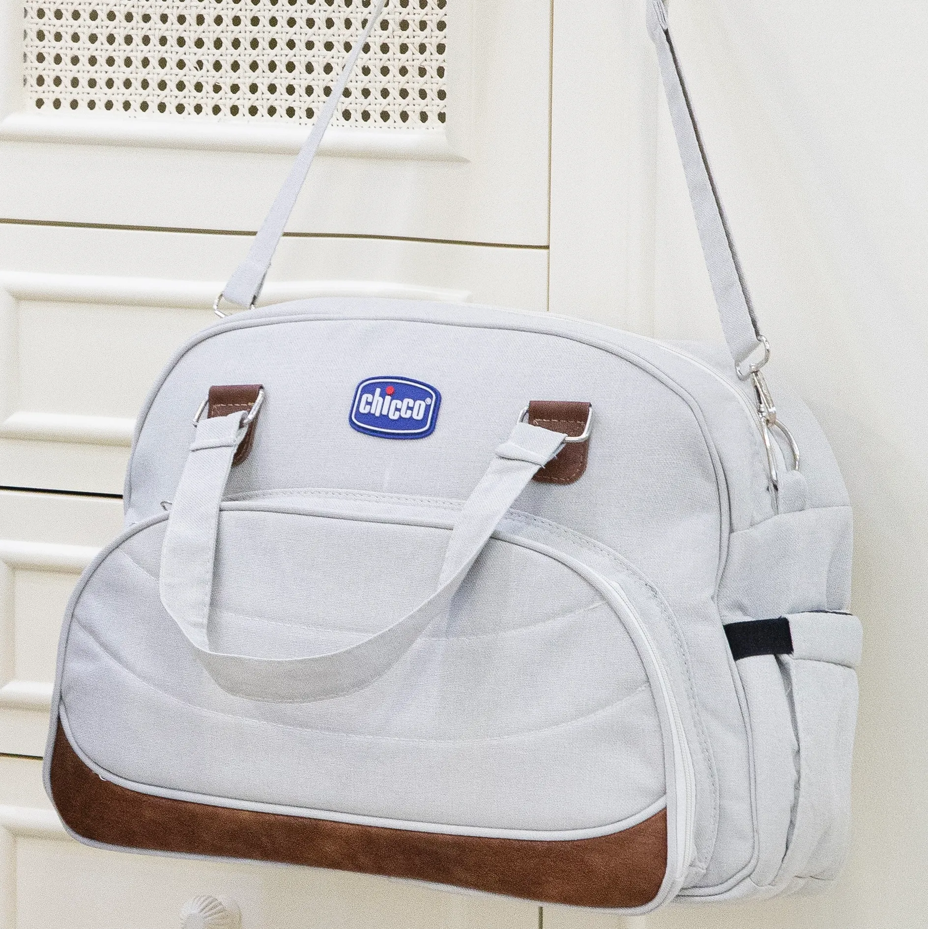 ساک دستی لوازم کودک برند چیکو، کیفی مناسب بیمارستان و زایمان است. این ساک لوازم مادر و نوزاد، دارای بند رودوشی است. شما می‌توانید از آن به صورت دستی و رودوشی استفاده نمایید. ساک رودوشی لوازم کودک، از جنس کتان است. امکان شستوشوی آسان از مزایای کیف نوزادی با جنس کتان است. در بخش بیرونی ساک دستی وسایل نوزاد، قسمت‌هایی نمای چرم کار شده است. این امر زیبایی کیف را دو چندان کرده است.