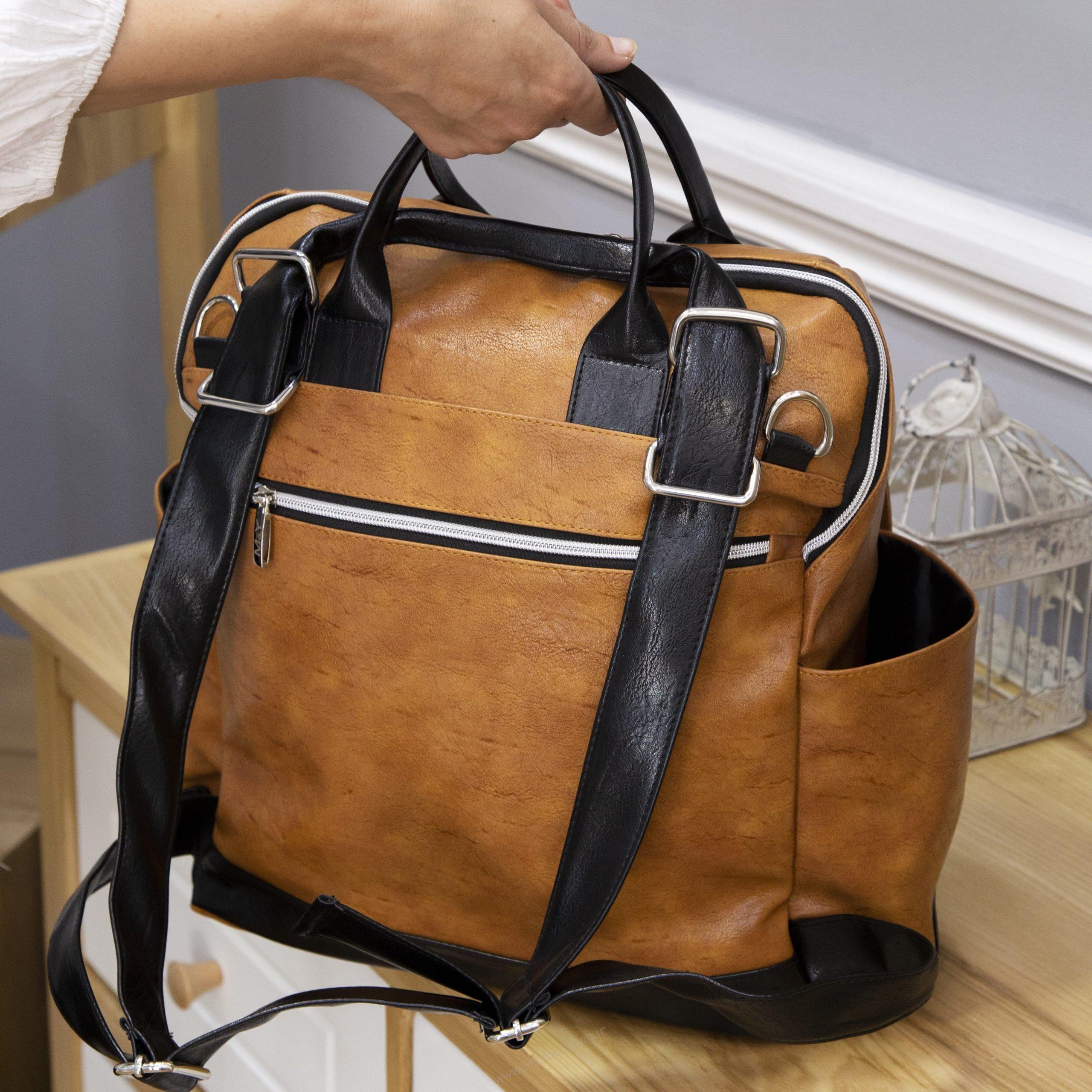 خانهساک لوازم نوزاد چرم ساک لوازم نوزاد سه کاره ام اند وای قهوه‌ای-مشکی