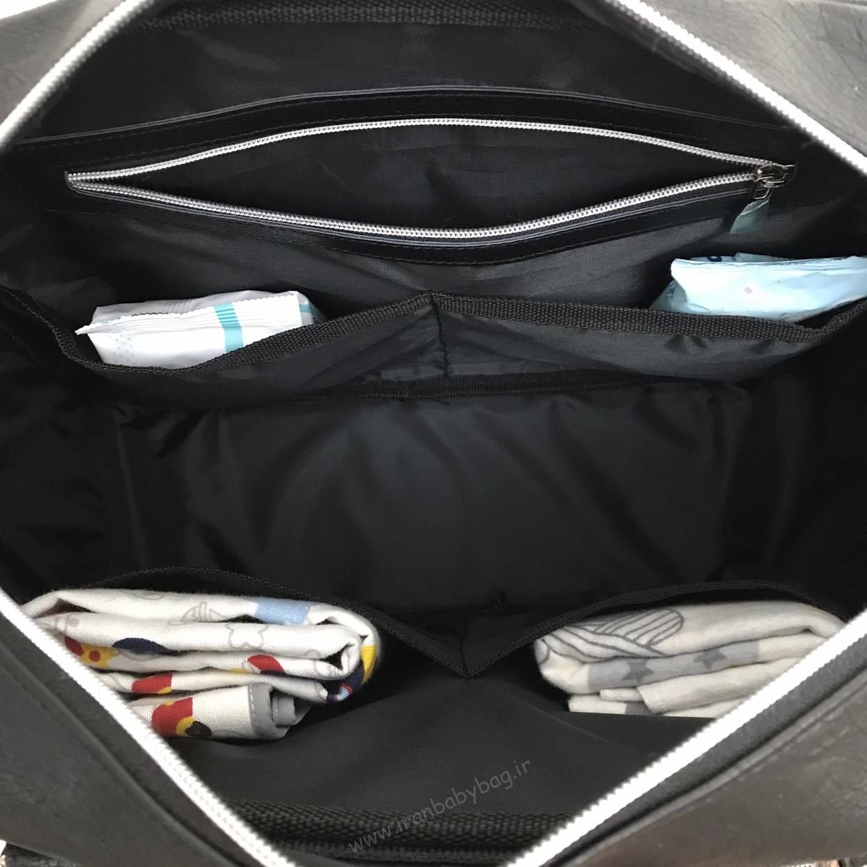 • ساک لوازم نوزاد مدل دو جیب برند ام اند وای مشکی
