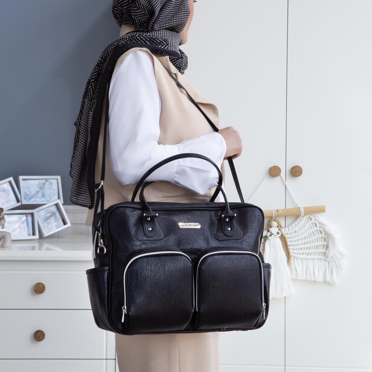خانهساک لوازم نوزاد چرم ساک لوازم نوزاد مدل دو جیب برند ام اند وای مشکی