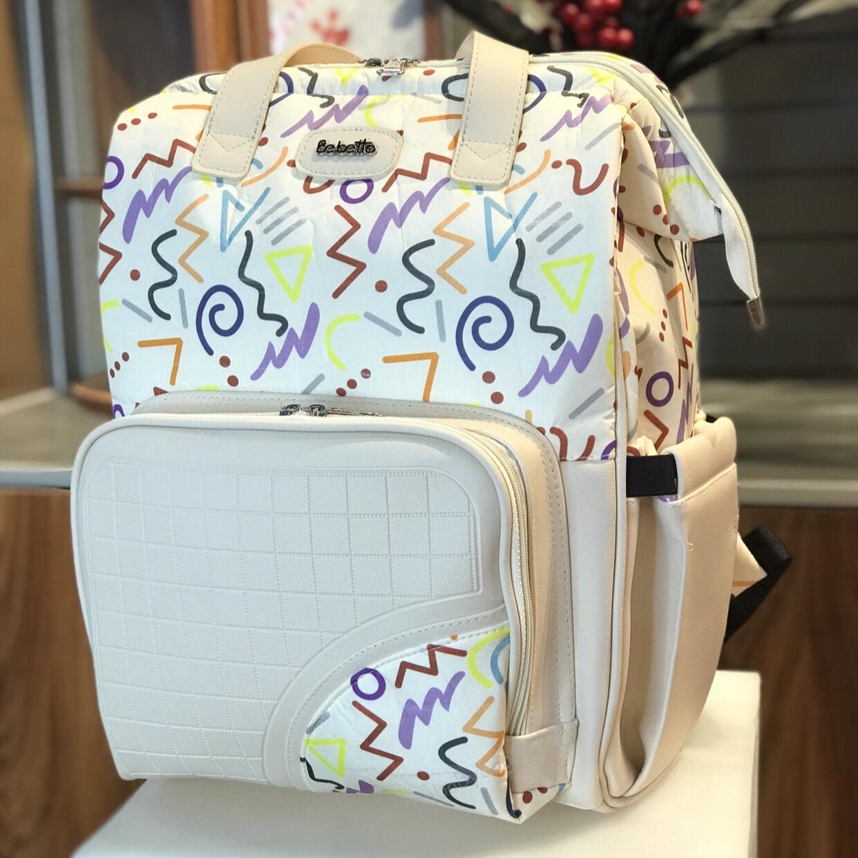- کوله طرحدار لوازم نوزاد ببتو نما چرم هندسی کرم