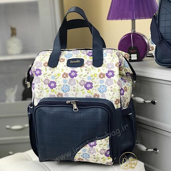 ساک رودوشی لوازم نوزاد نما چرم گلدار سورمهای