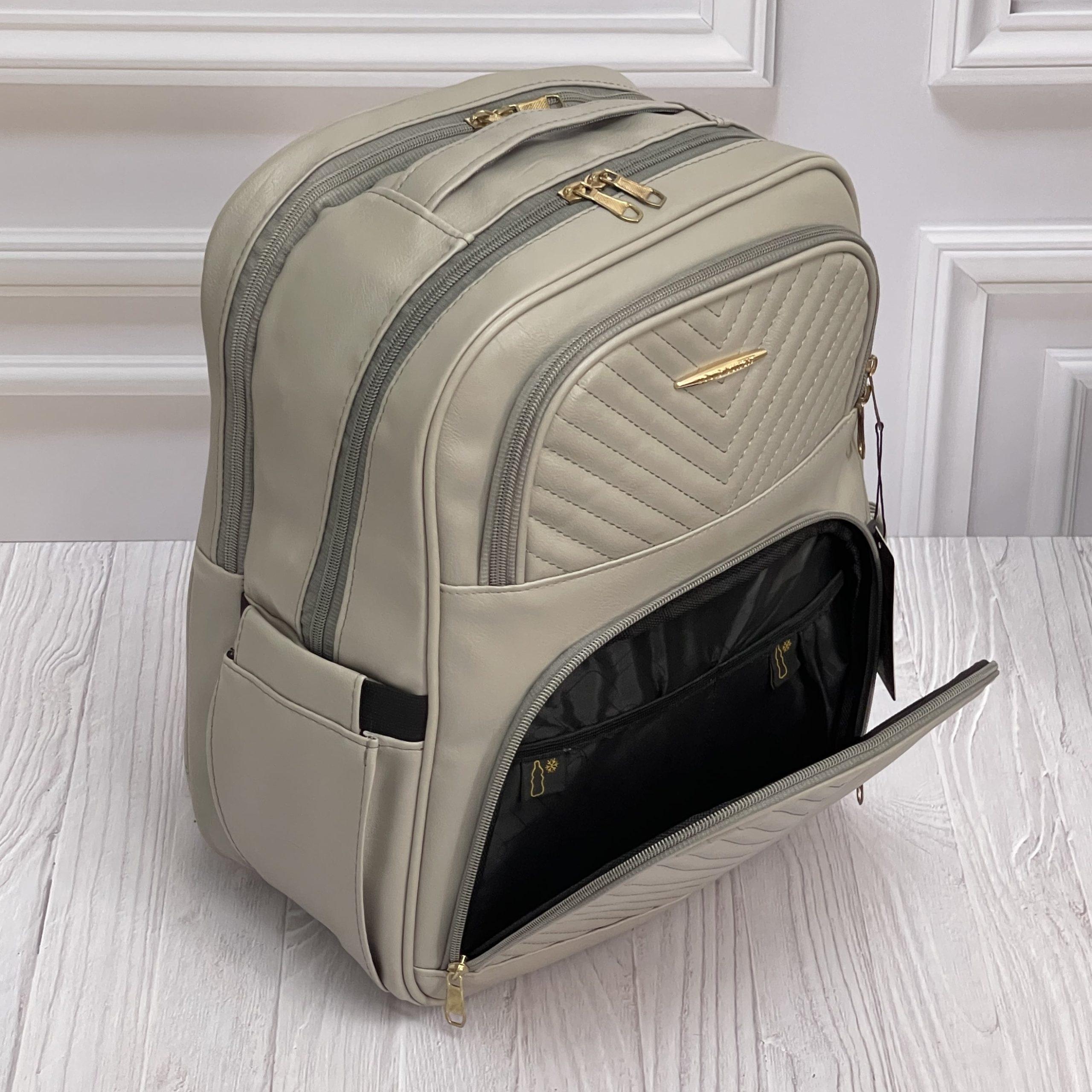 تمام بخشهای داخلی کوله پشتی لوازم نوزاد چرم، آستردوزی شده و ضد آب است.