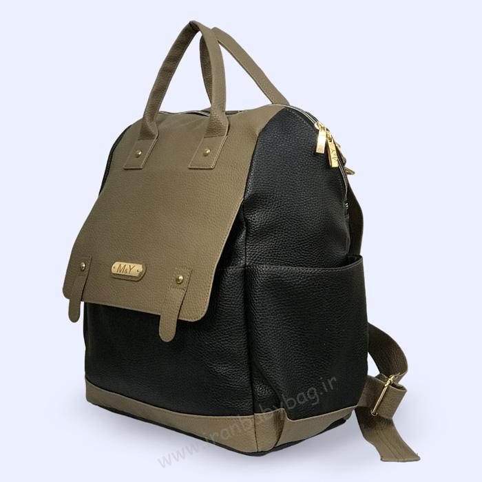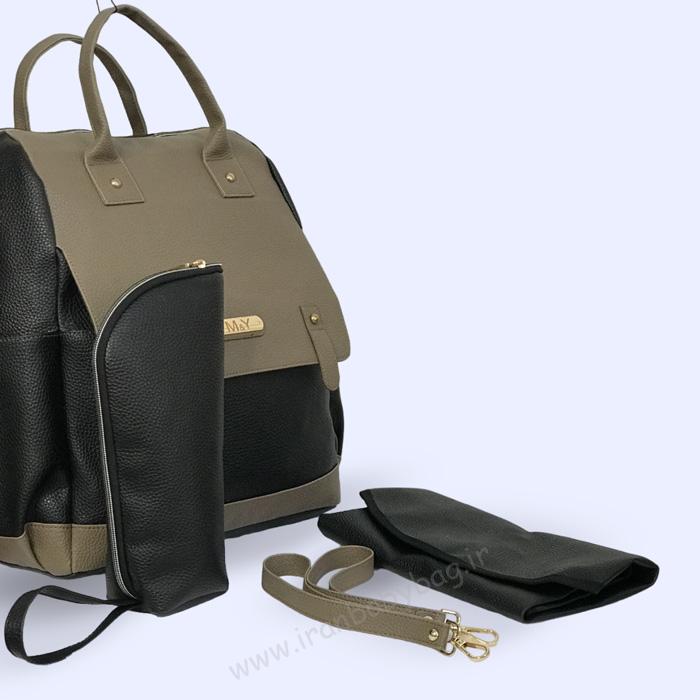 کوله پشتی لوازم نوزاد چرم M&Y مشکی-کرم