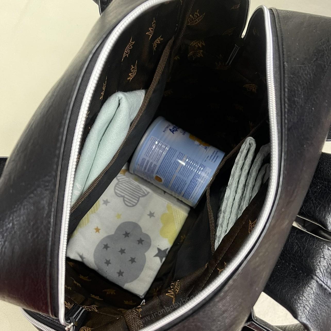 کوله پشتی لوازم نوزاد چرم M&Y مشکی-کرم