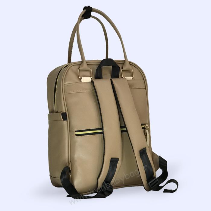 جلوی کوله پشتی لوازم نوزاد، یک جیب بزرگ قرار دارد که با دکمه باز و بسته میشود. هر دو طرف کیف، جیبهای عمیق برای گذاشتن لوازمی مثل شیشه شیر نوزاد، دستمال و… وجود دارد. حالت کشسانی آنها به شما امکان قرار دادن وسایل بیشتر را میدهد.