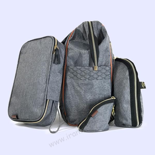 همچنین در پشت کوله لوازم مادر یک جیب زیپدار و یک فضای بدون زیپ برای دسترسی آسان به وسایل قرار دارد.