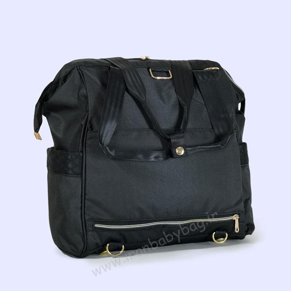 همچنین در پشت کوله لوازم مادر یک جیب زیپدار و یک فضای بدون زیپ برای دسترسی آسان به وسایل قرار دارد.