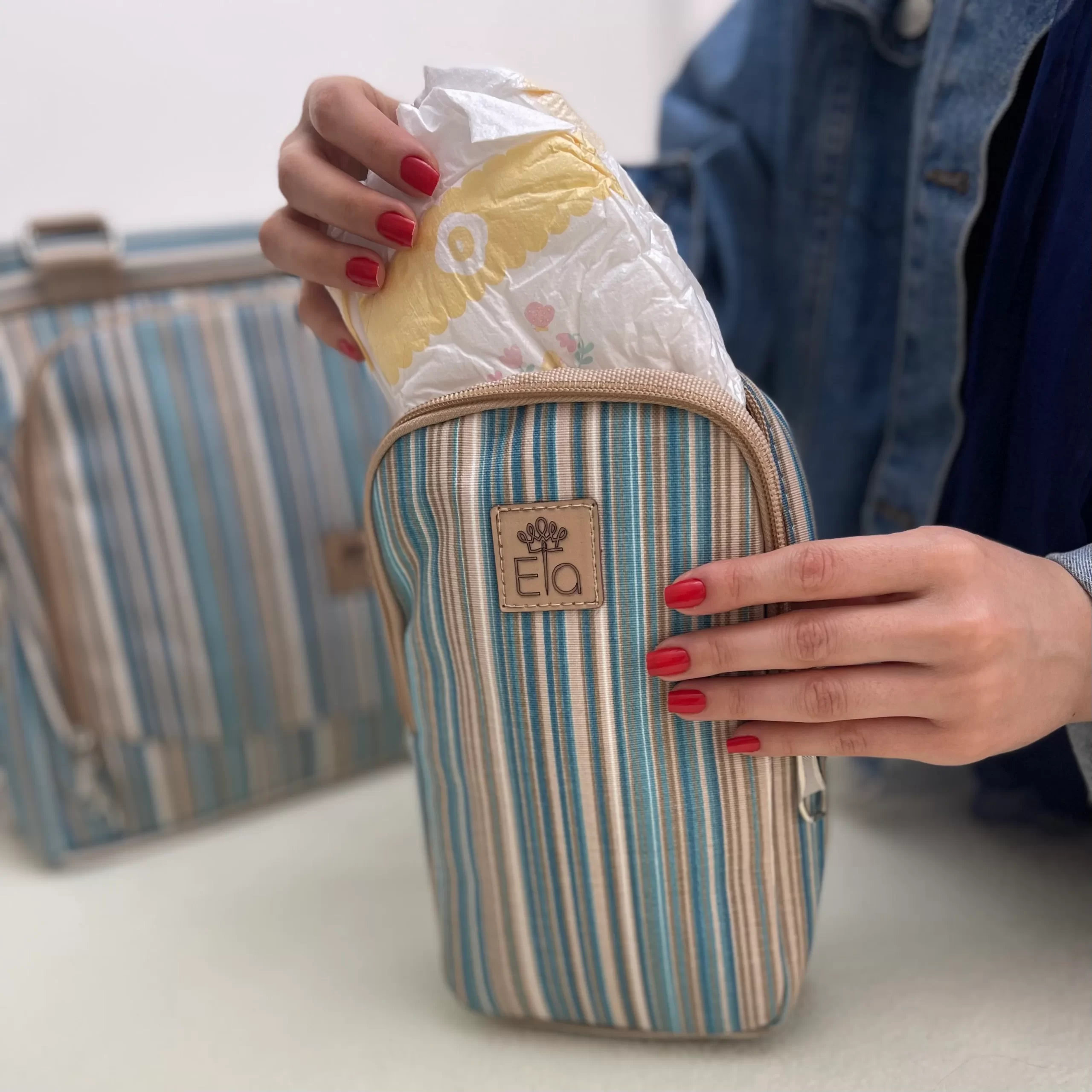 کیف لوازم مادر و کودک با کیفیت ایرانی آوان محصولی از برند الا میباشد. برند الا یک برند معروف ایرانی است که به تولید ساک رودوشی لوازم نوزاد با کیفیت میپردازد. ساک لوازم نوزاد آوان از جنس پارچه کتان ضد آب و ضد لک است. طرح و مدل پارچهی استفاده شده در این ساک لوازم مادر و نوزاد، به شما این امکان را میدهد که بعدها از آن به عنوان ساک شخصیتان استفاده نمایید.