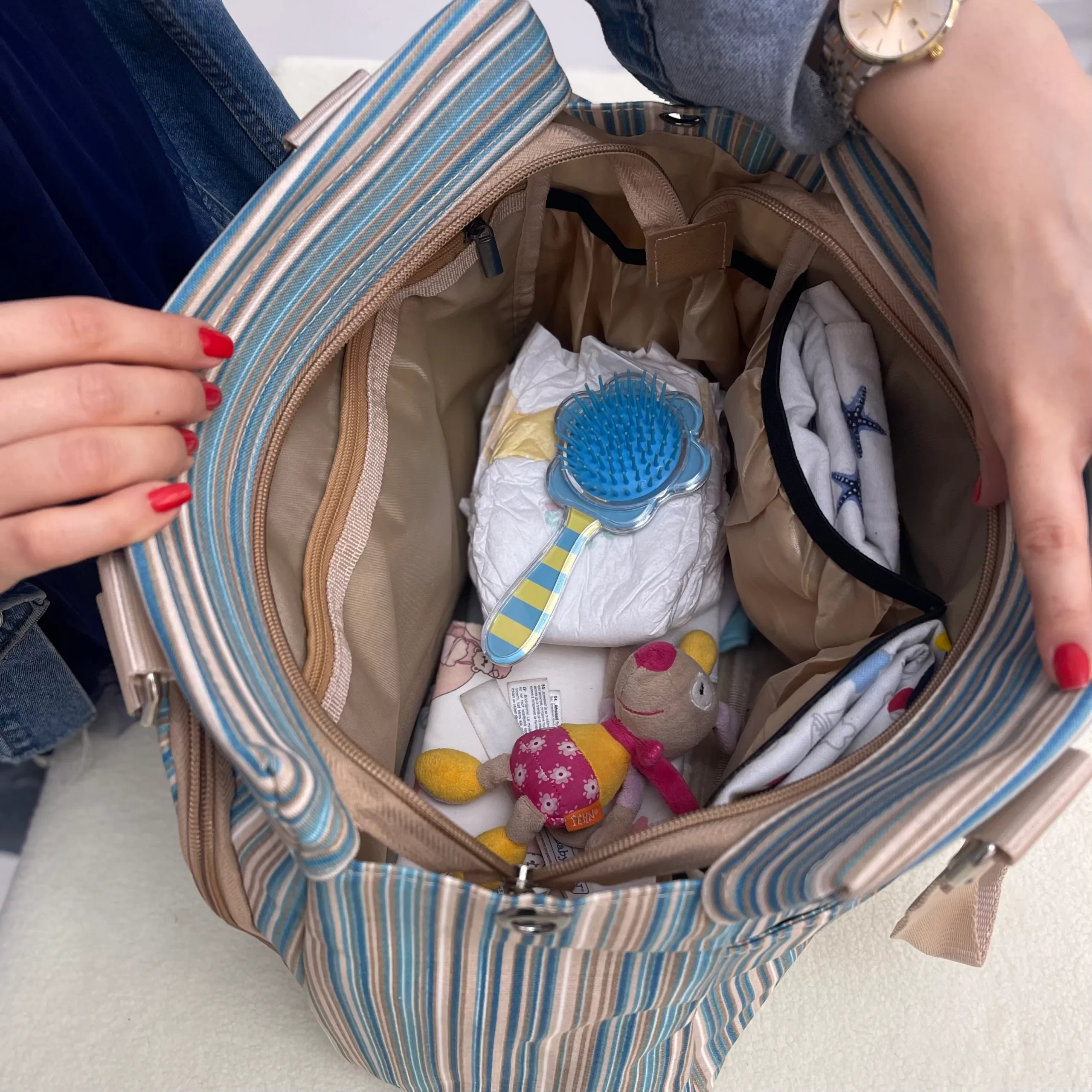 بخشبندیهای متعدد در قسمت داخلی و بیرونی ساک لوازم نوزاد به شما در ساماندهی وسایل نوزاد کمک شایانی خواهد کرد.