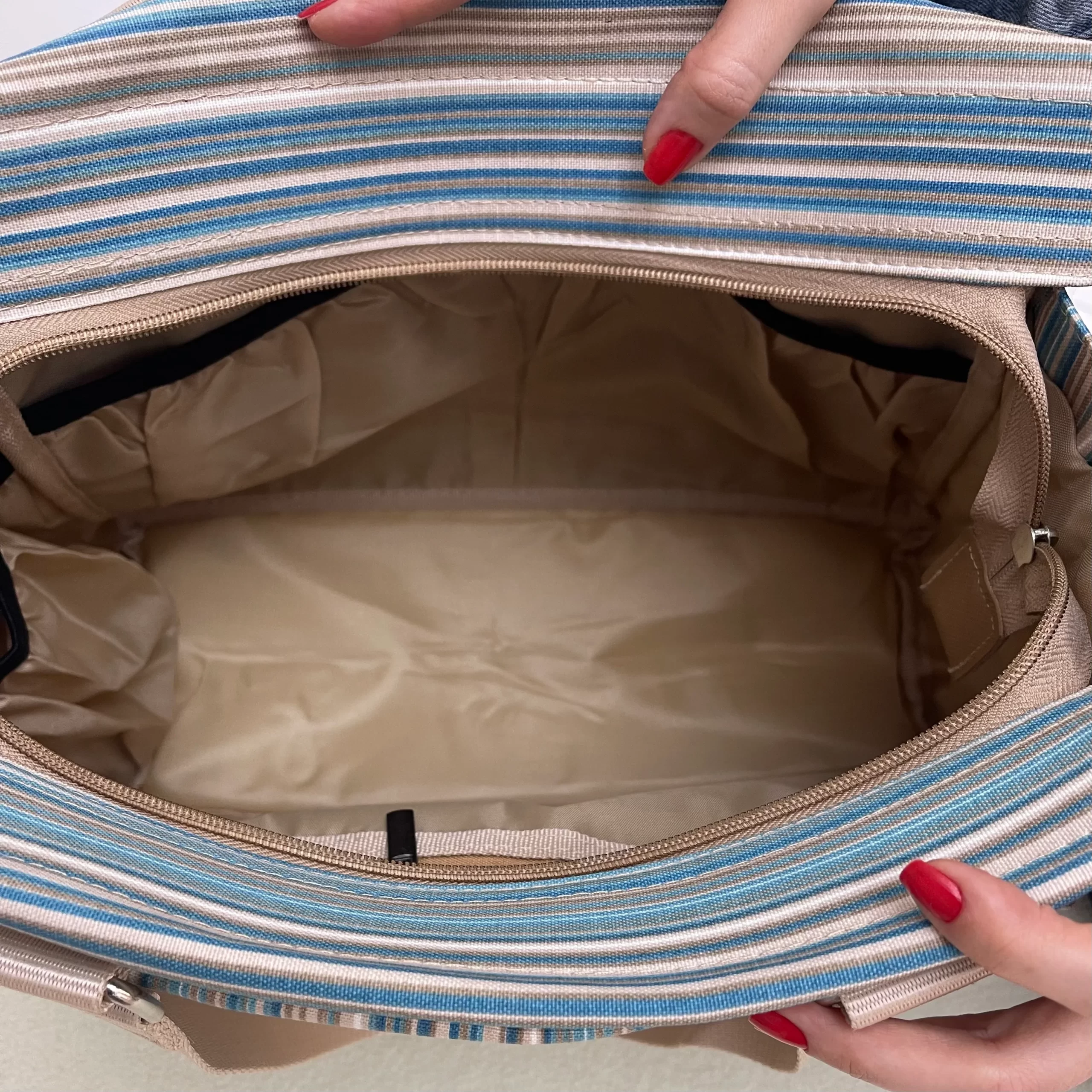 فضای داخلی ساک نوزادی کاملا آسترکشی شده و ضد آب است.