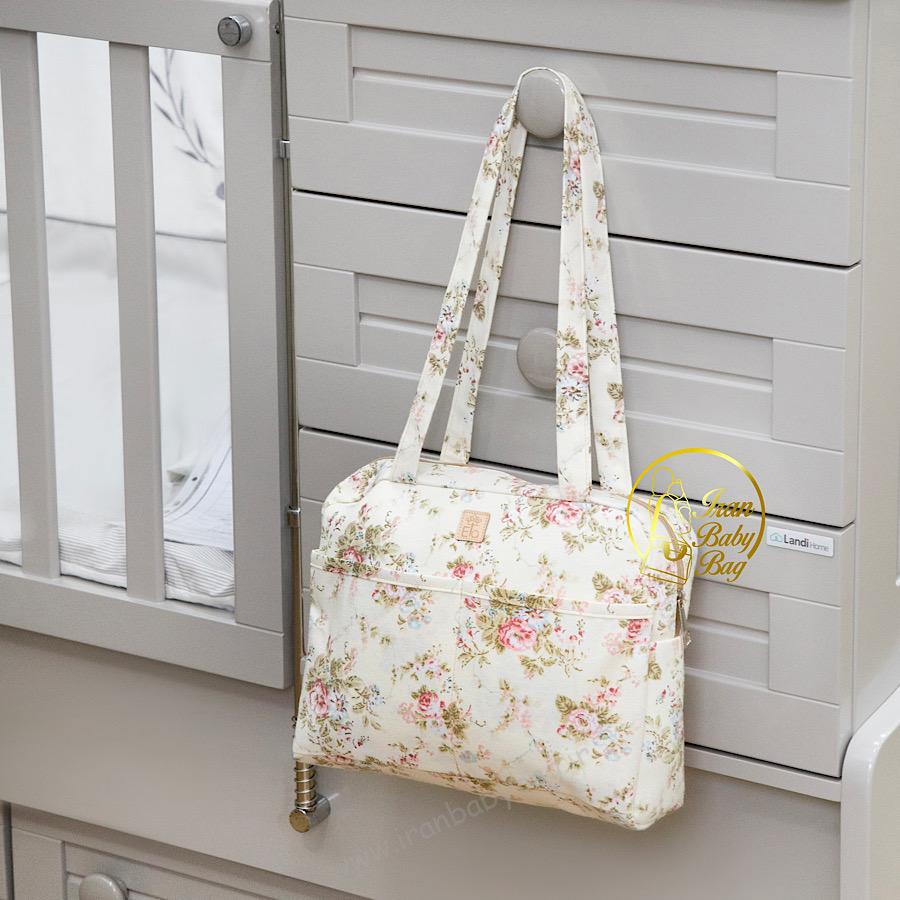 کیف لوازم نوزاد کوچک مدل الی گلدار کرم