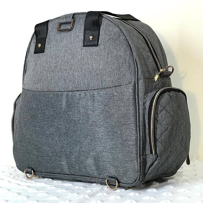 پشت کوله لوازم مادر یک جیب برای قرار دادن اقلام ضروری دارد. داخل ساک وسایل، دارای آستر سراسری و ضد آب و دارای بخشبندیهای متعدد است.