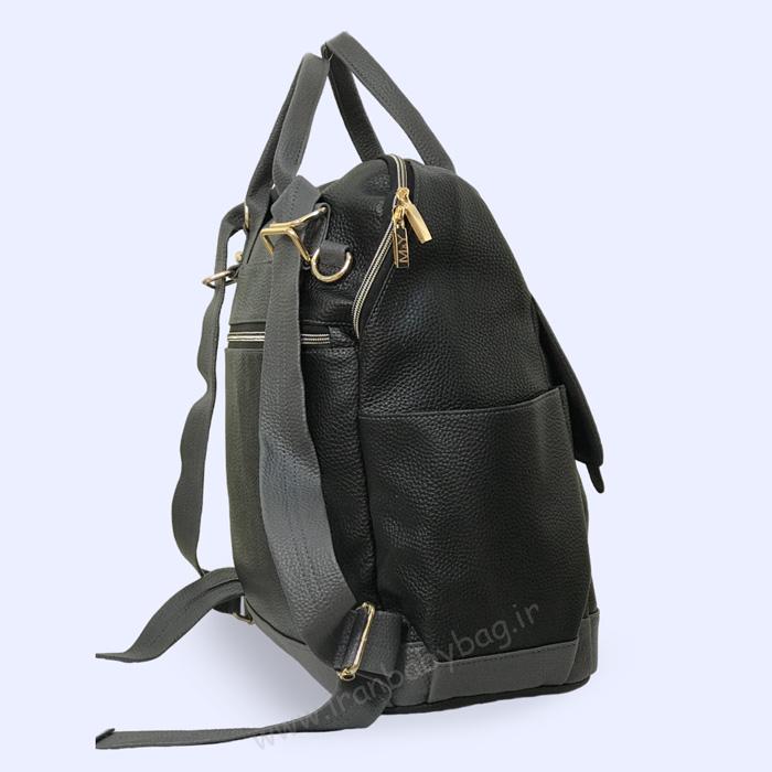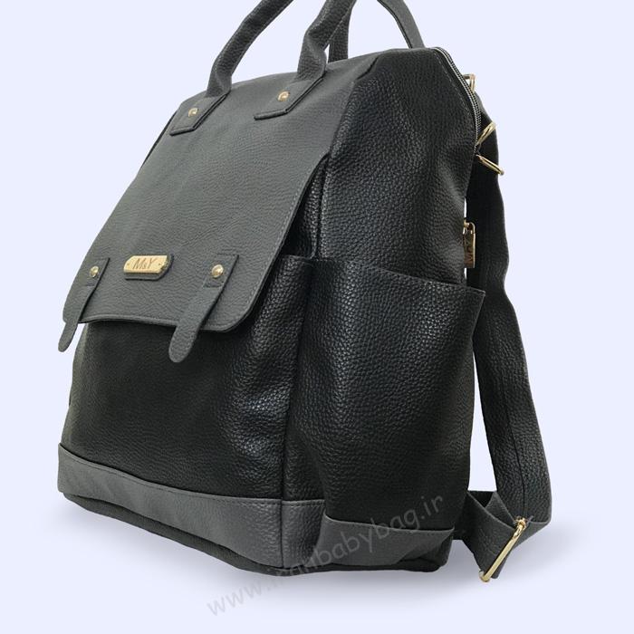 کوله پشتی لوازم نوزاد چرم M&Y دارای رنگبندی، مشکی-طوسی و مشکی-کرم است.